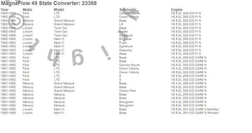 Below is an abreviated list of applications for the Direct Fit Catalytic Converter.