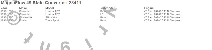 Below is an abreviated list of applications for the Direct Fit Catalytic Converter.