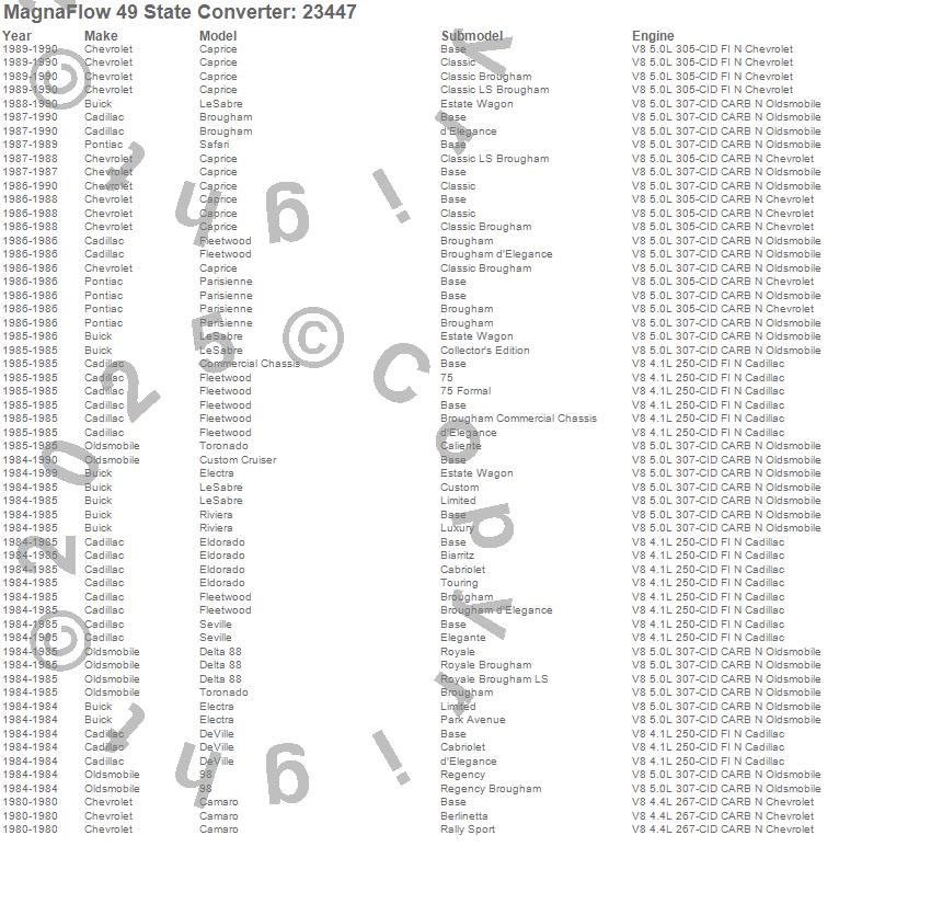 Below is an abreviated list of applications for the Direct Fit Catalytic Converter.