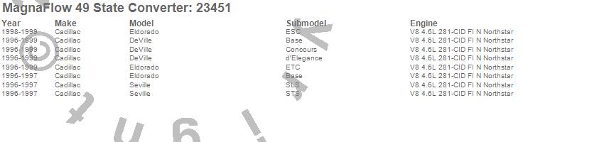 Below is an abreviated list of applications for the Direct Fit Catalytic Converter.