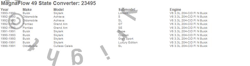Below is an abreviated list of applications for the Direct Fit Catalytic Converter.