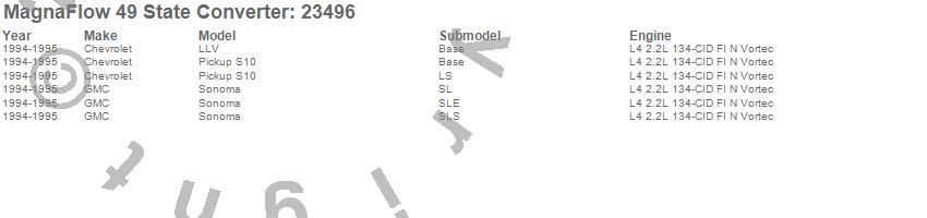 Below is an abreviated list of applications for the Direct Fit Catalytic Converter.