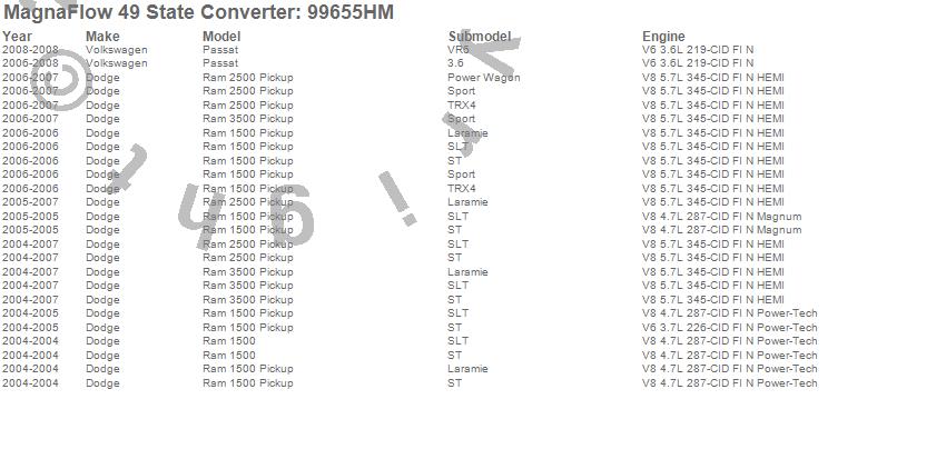 Below is an abreviated list of applications for the Heavy Metal Series Universal Catalytic Converter.
