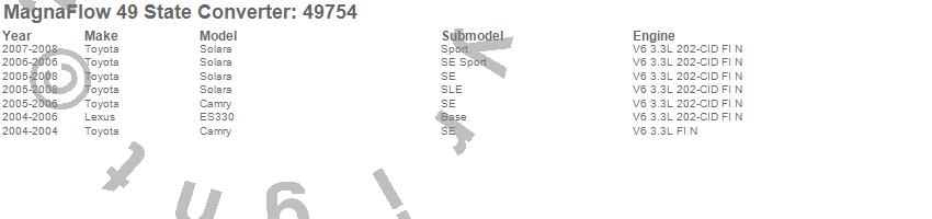 Below is an abreviated list of applications for the Direct Fit Catalytic Converter.