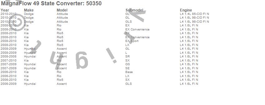 Below is an abreviated list of applications for the Direct Fit Catalytic Converter.