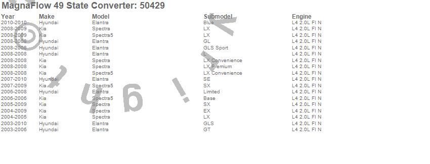 Below is an abreviated list of applications for the Direct Fit Catalytic Converter.
