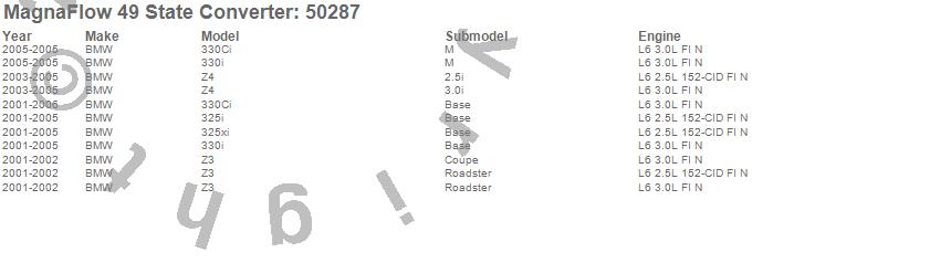 Below is an abreviated list of applications for the Direct Fit Catalytic Converter.