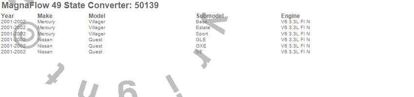 Below is an abreviated list of applications for the Direct Fit Catalytic Converter.