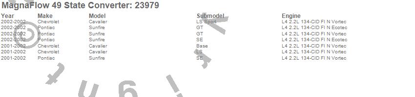 Below is an abreviated list of applications for the Direct Fit Catalytic Converter.