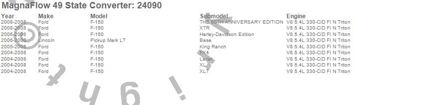 Below is an abreviated list of applications for the Direct Fit Catalytic Converter.
