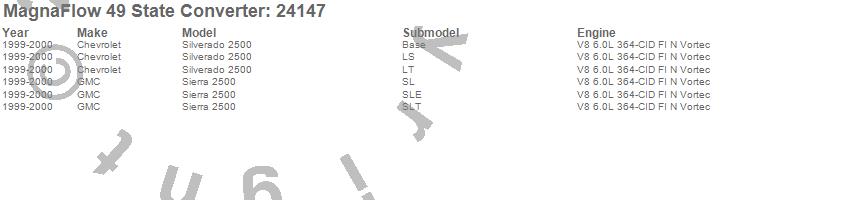 Below is an abreviated list of applications for the Direct Fit Catalytic Converter.