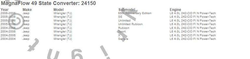 Below is an abreviated list of applications for the Direct Fit Catalytic Converter.