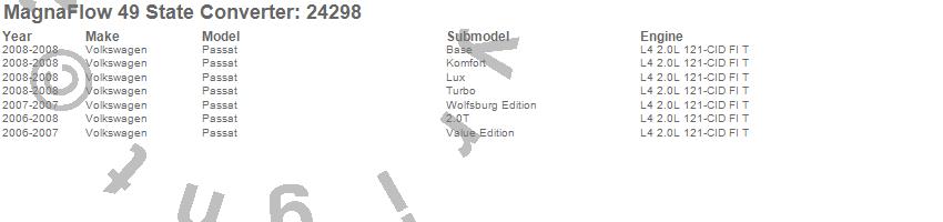 Below is an abreviated list of applications for the Direct Fit Catalytic Converter.