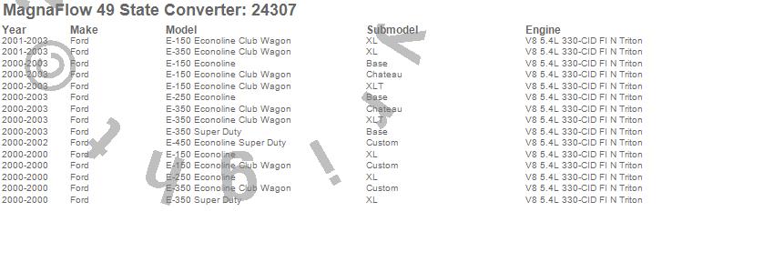 Below is an abreviated list of applications for the Direct Fit Catalytic Converter.