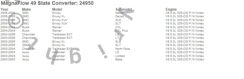 Below is an abreviated list of applications for the Direct Fit Catalytic Converter.