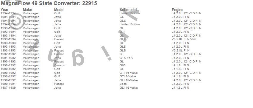 Below is an abreviated list of applications for the Direct Fit Catalytic Converter.