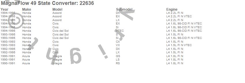 Below is an abreviated list of applications for the Direct Fit Catalytic Converter.