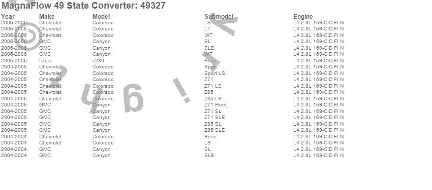Below is an abreviated list of applications for the Direct Fit Catalytic Converter.