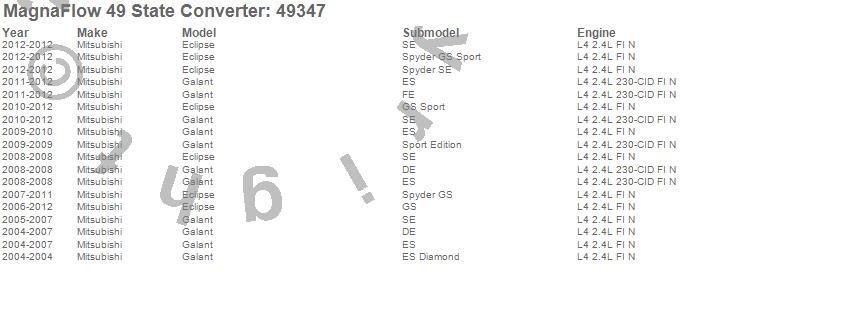 Below is an abreviated list of applications for the Direct Fit Catalytic Converter.