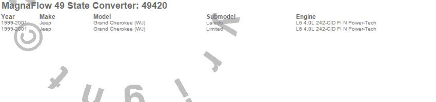 Below is an abreviated list of applications for the Direct Fit Catalytic Converter.