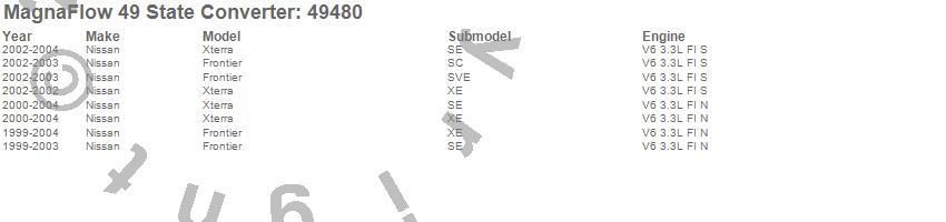 Below is an abreviated list of applications for the Direct Fit Catalytic Converter.