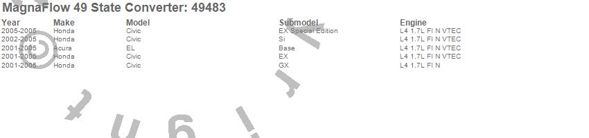 Below is an abreviated list of applications for the Direct Fit Catalytic Converter.