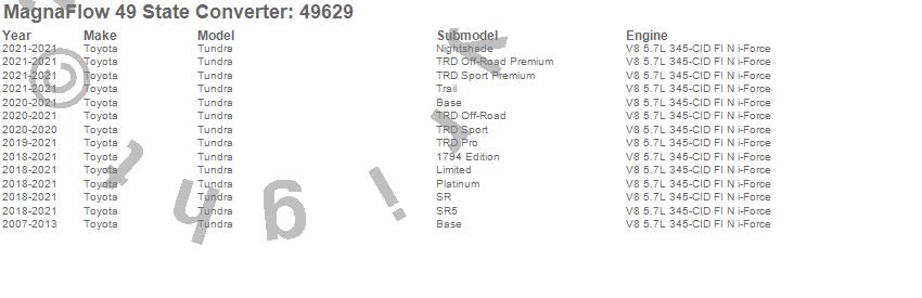 Below is an abreviated list of applications for the Direct Fit Catalytic Converter.