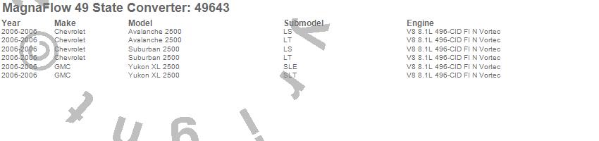 Below is an abreviated list of applications for the Direct Fit Catalytic Converter.