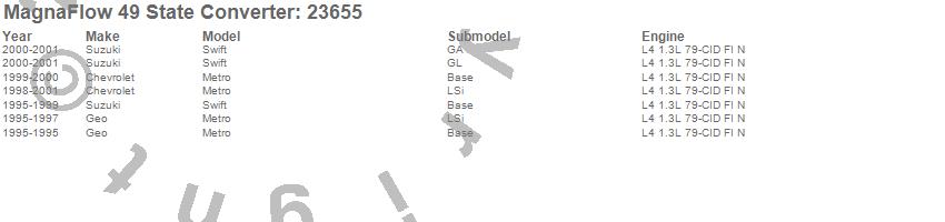 Below is an abreviated list of applications for the Direct Fit Catalytic Converter.
