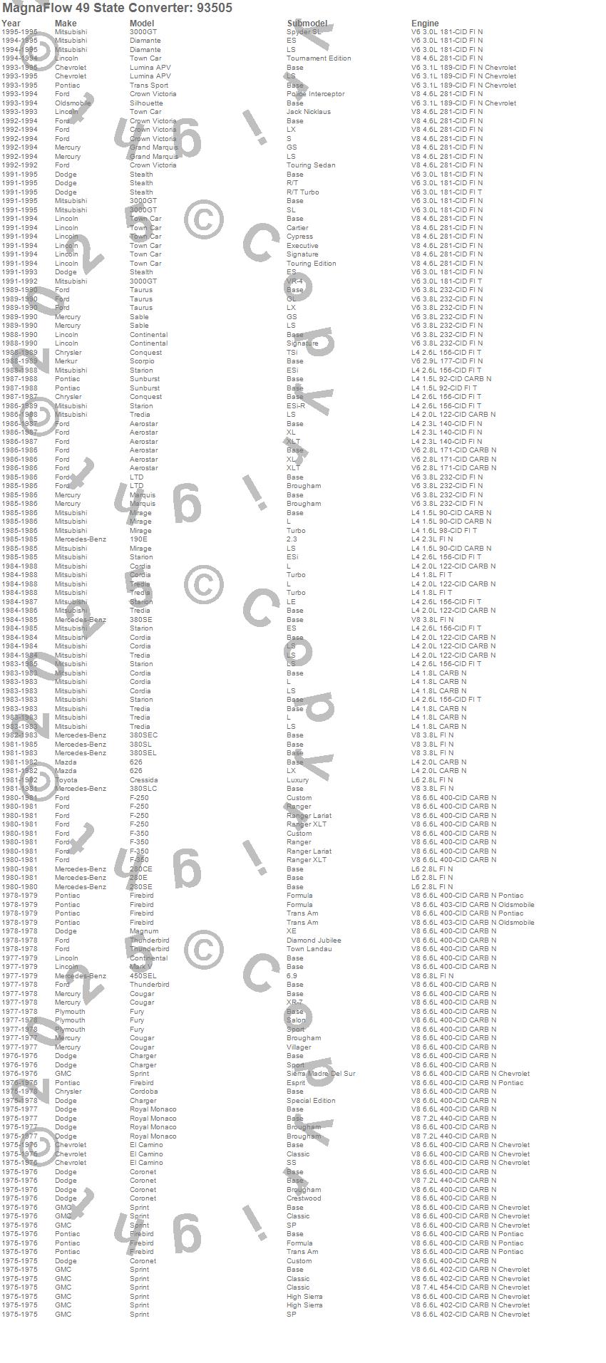 Below is an abreviated list of applications for the 93500 Series OBDII Compliant Universal Catalytic Converter.