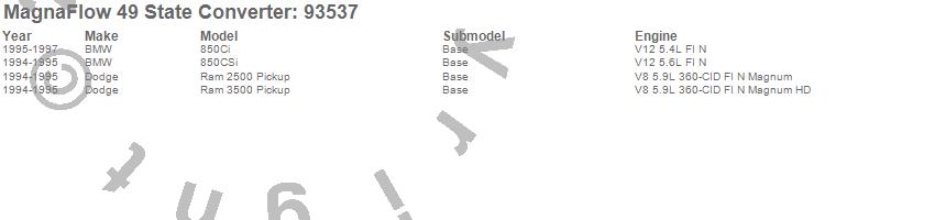 Below is an abreviated list of applications for the 93500 Series OBDII Compliant Universal Catalytic Converter.