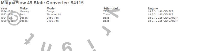 Below is an abreviated list of applications for the 94100 Series Air Tube Non-OBDII Universal Catalytic Converter.