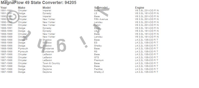 Below is an abreviated list of applications for the 94200 Series OBDII Compliant Universal Catalytic Converter.