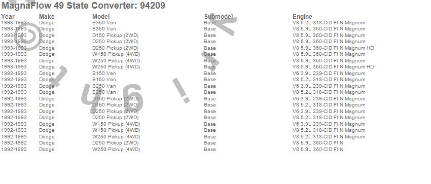 Below is an abreviated list of applications for the 94200 Series OBDII Compliant Universal Catalytic Converter.