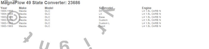 Below is an abreviated list of applications for the Direct Fit Catalytic Converter.