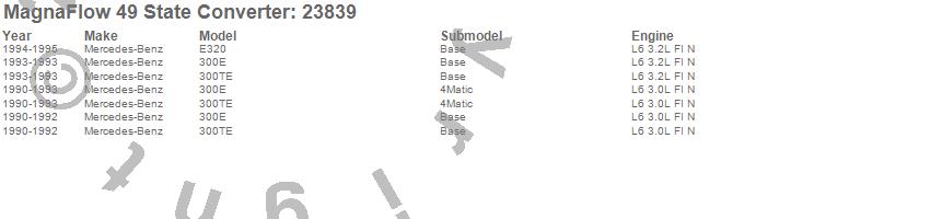 Below is an abreviated list of applications for the Direct Fit Catalytic Converter.
