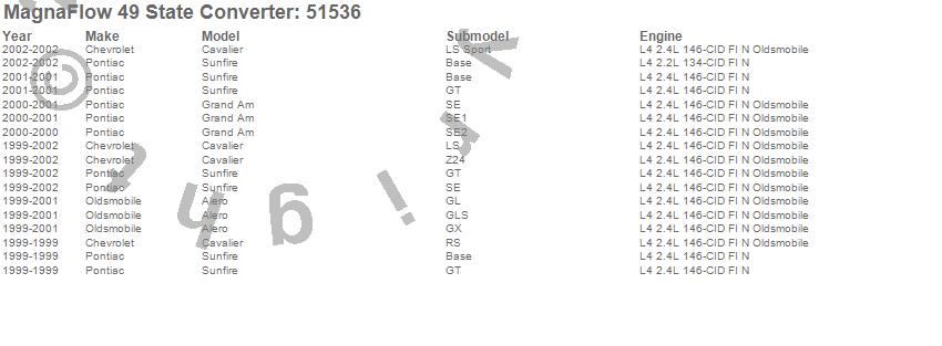 Below is an abreviated list of applications for the Direct Fit Catalytic Converter.