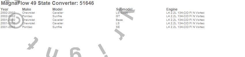 Below is an abreviated list of applications for the Direct Fit Catalytic Converter.