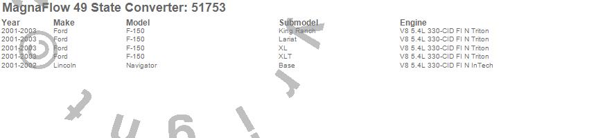 Below is an abreviated list of applications for the Direct Fit Catalytic Converter.