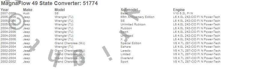 Below is an abreviated list of applications for the Universal-Fit Catalytic Converter.