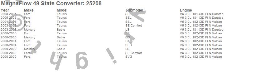 Below is an abreviated list of applications for the Direct Fit Catalytic Converter.