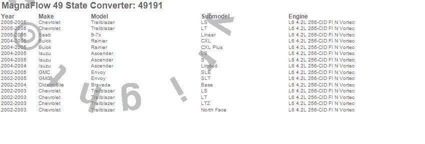 Below is an abreviated list of applications for the Direct Fit Catalytic Converter.