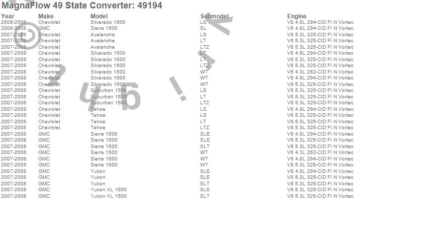 Below is an abreviated list of applications for the Direct Fit Catalytic Converter.