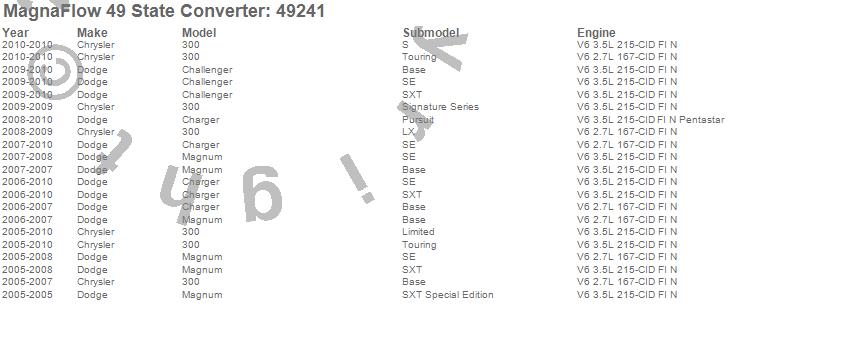 Below is an abreviated list of applications for the Direct Fit Catalytic Converter.