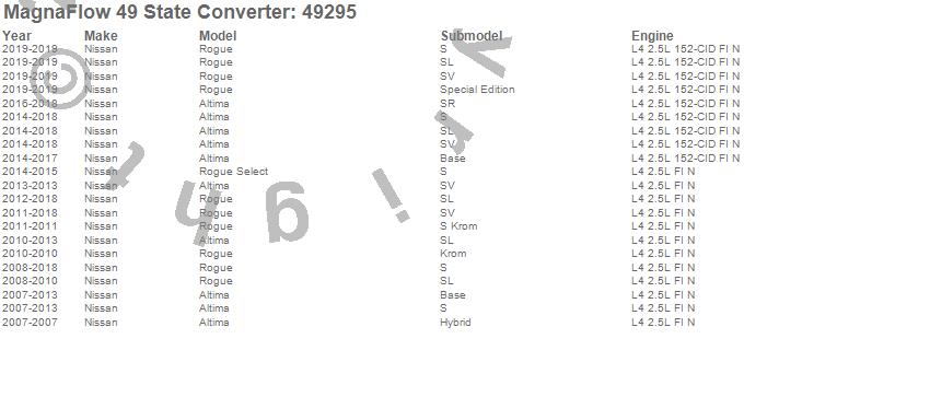 Below is an abreviated list of applications for the Direct Fit Catalytic Converter.