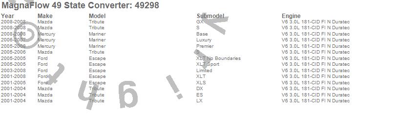 Below is an abreviated list of applications for the Direct Fit Catalytic Converter.