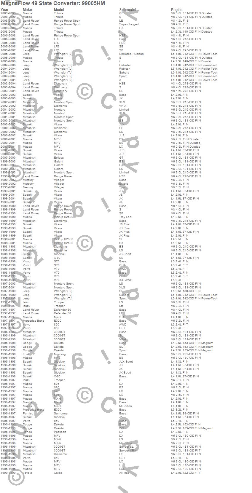 Below is an abreviated list of applications for the Heavy Metal Series Universal Catalytic Converter.