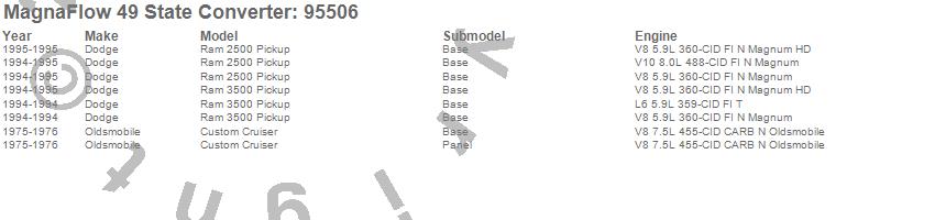 Below is an abreviated list of applications for the 95500 Series OBDII Compliant Universal Catalytic Converter.