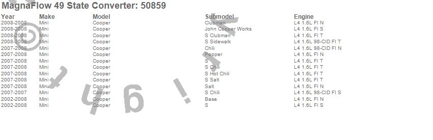 Below is an abreviated list of applications for the Direct Fit Catalytic Converter.