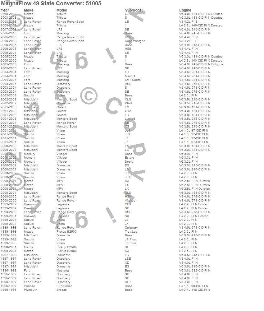 Below is an abreviated list of applications for the Universal-Fit Catalytic Converter.